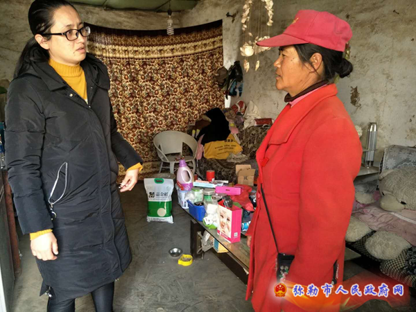 朱少林年龄较大,妻子无业,家庭无收入,每月靠打零工和低保维持生活,生活困难。来到朱少林家中,毕晓红与他们亲切交谈,详细询问他们的身体状况和生活情况,鼓励他们振作精神,积极克服困难、乐观面对生活,坚定脱困信心,创造美好幸福生活。