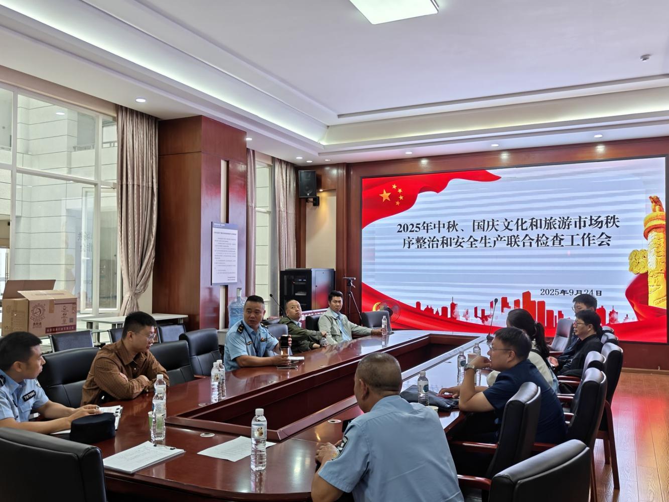 近日,由市文化和旅游局牵头,市应急管理局、市公安局、市交通运输局、市卫生和健康局、市市场监督管理局、市消防救援大队、市综合行政执法局等多部门协同参与,深入重点文旅企业开展中秋、国庆文化和旅游市场秩序整治及安全生产联合检查。
