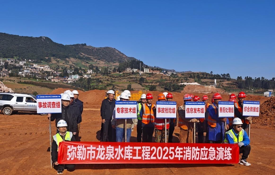 近日,弥勒市水务局在龙泉水库大坝工程施工现场组织开展消防安全应急演练。此次演练不仅检验了水利工程建设领域应急处置实战能力,也为龙泉中型水库这一重要水利基础设施的安全建设夯实基础,为工程安全推进、流域安澜保障筑牢坚实屏障。