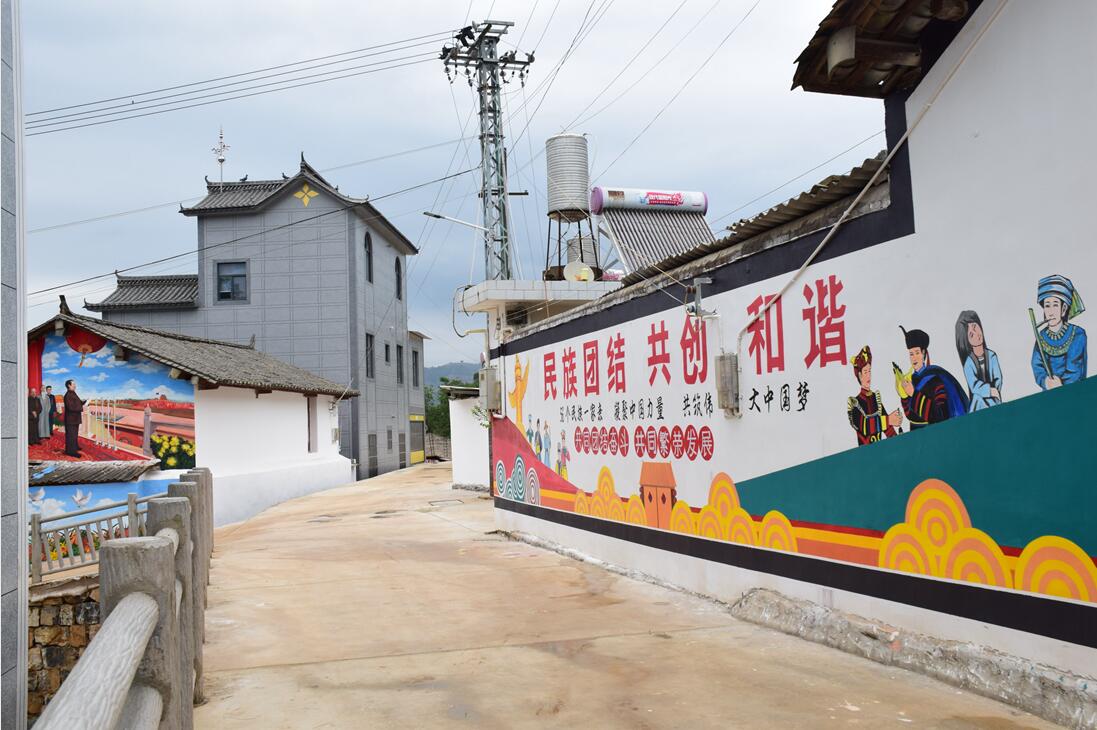“留乡愁+重三治”浸润涵养村庄文化。把蕴含着宁就人乡愁的古树、龙潭保留下来,昔日乡景得到有效保护。以完善自治、德治、法治“三治合一”的乡村治理体系为重点,以实施房屋墙体外立面改造为契机,采取漫画、彩绘、故事牌等方式,把党的理论方针政策、英雄事迹、传统文化等展现在文化墙上,实施房屋墙体外立面改造9630平方米,新建文化长廊294平方米、民族文化壁画600平方米,形成村外稻田飘香、村内文化浸润的良好互动局面。宁就村入选为红河州第二批文明新风示范村。