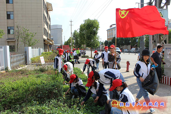 师生齐发力,亮出“五四”一面旗。动员全镇中小学师生积极参与到“创建卫生乡镇,我们在行动”活动中来,每周四下午对集镇主街道两侧进行卫生大清扫,做到“团旗在飘扬,团员在行动”。