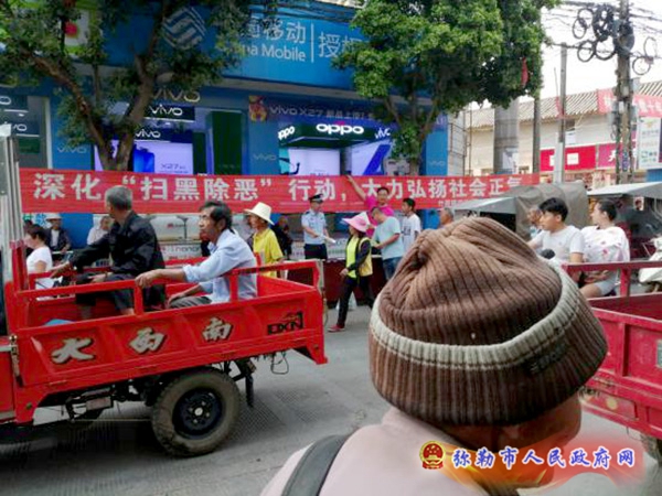 活动中,增挂扫黑除恶专项斗争新标语13条,向沿街商铺和过往群众发放《扫黑除恶专项斗争知识明白卡》、云南省“两院两厅”《关于在全省开展扫黑除恶专项斗争的通告》、《平安弥勒 法治弥勒》宣传折页等资料1200余份和法治宣传手提袋200余个,向群众开展“面对面”宣传讲解300余人次。