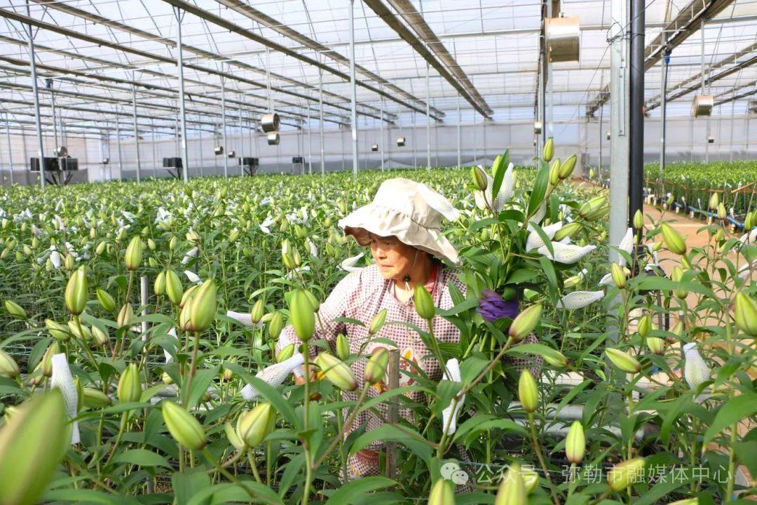鲜切百合花主要采用无土箱式栽培,实现了全季节、全天候花卉采收。