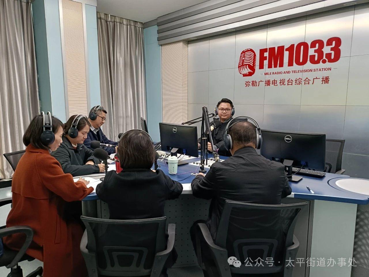 12月10日上午,太平街道党工委书记张宇带领街道党工委委员、纪工委书记谢玲,街道党工委委员、组织委员张军,街道办事处副主任朱迪,街道党群服务中心主任白成昱做客“弥勒热线”栏目,就街道各项工作发展、清廉云南建设、党建引领、旅游产业、一老一小等方面的话题与听众及网友进行分享和交流。