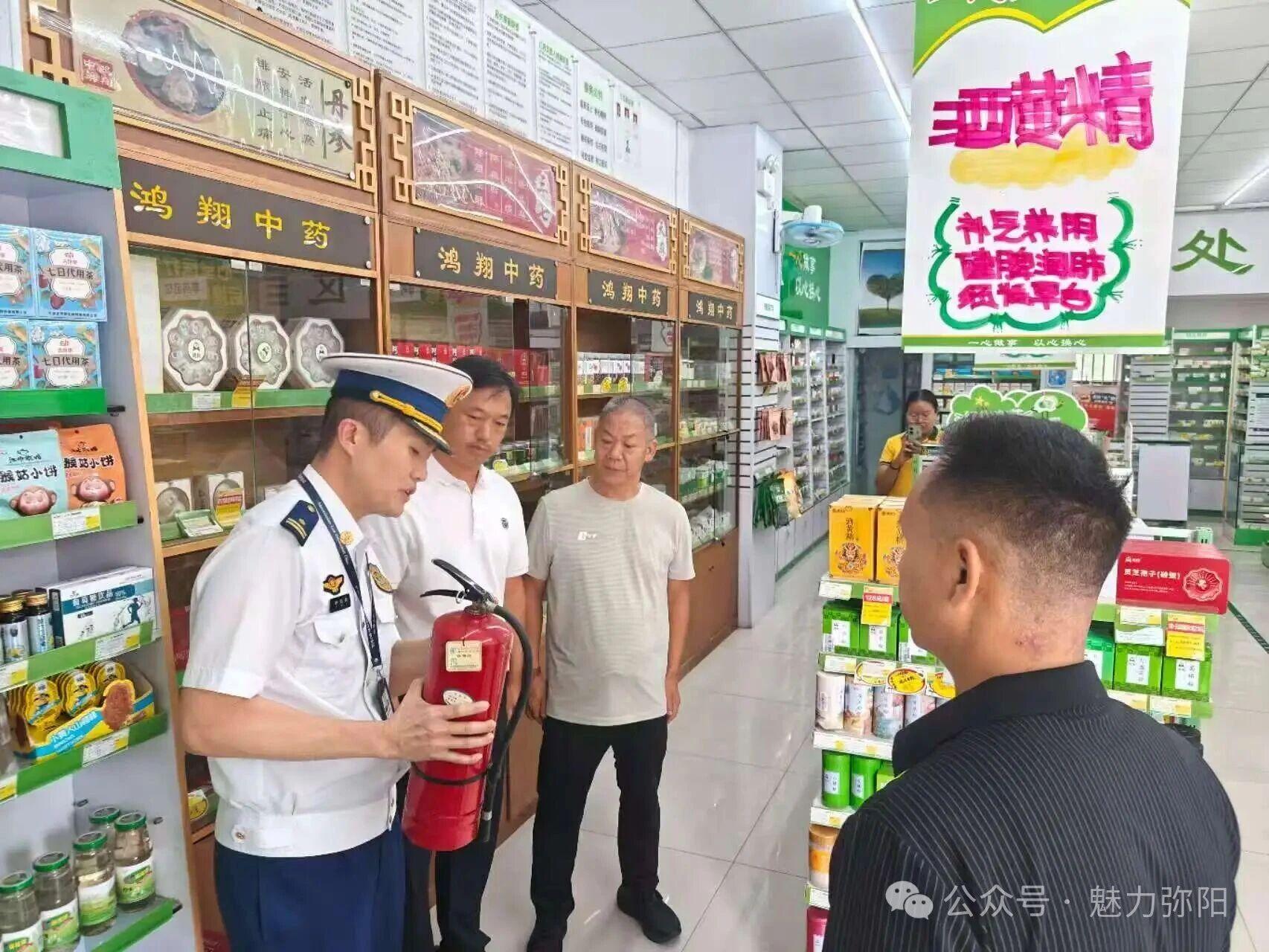 演练结束后,大家到药店、饭店、商场等场所开展了消防检查工作。