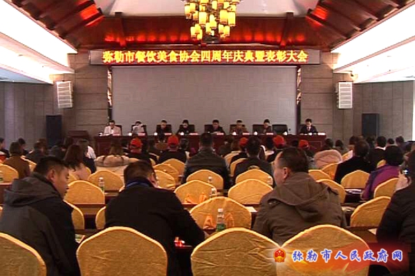 1月10日,弥勒市餐饮美食协会隆重举行四周年庆典暨表彰大会,省、州、市餐饮单位的领导及各涉旅单位参加庆典活动。