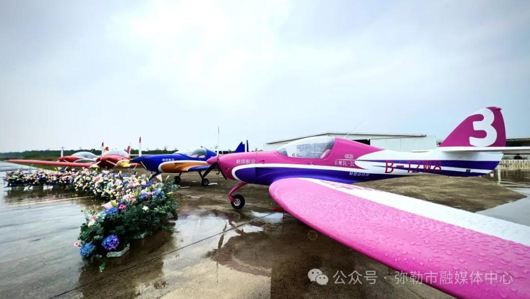 【弥勒浩翔科技有限公司董事长 董林】:这次交付是首次三机同时交付,标志弥勒低空经济有重大突破,三架飞机是作为飞行表演用的,他们总共订了五架飞机,后续还有两架,组成了浩翔的表演队,从此以后云南也有自己的飞行表演队。