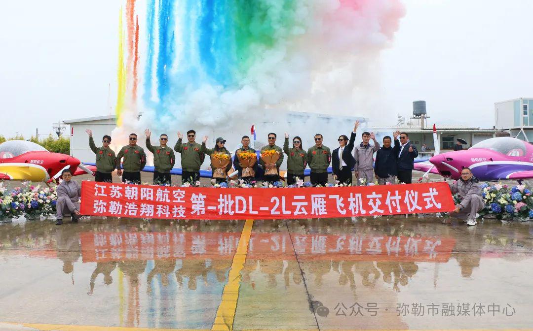 据了解,江苏朝阳通用航空有限公司与弥勒浩翔科技有限公司共订购5架DL-2L云雁飞机,8日上午,首批3架成功交付。