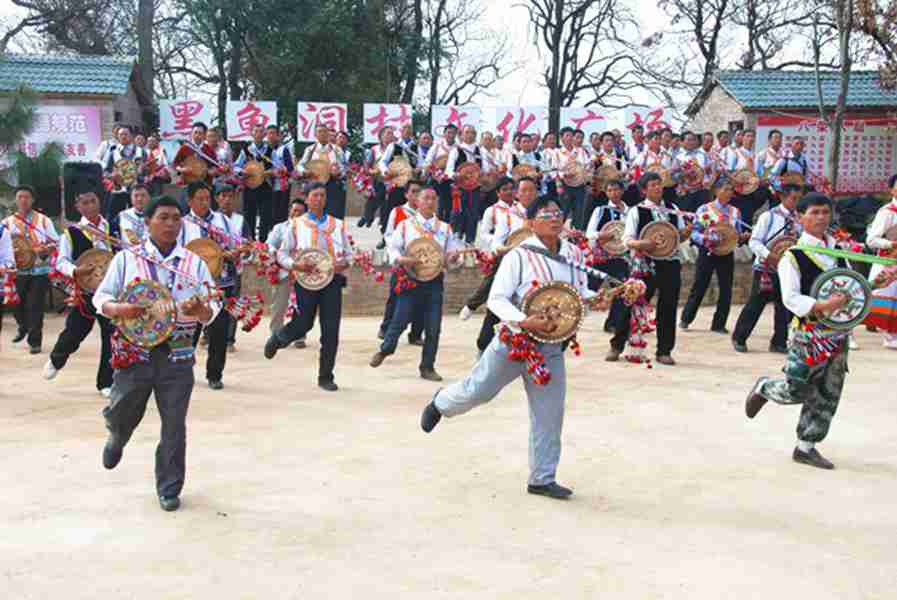“这是砚山阿细人的弦子舞。他是弦子舞的主要传承人之一。”王翔说“这里流传着‘是人不跳弦,白活几十年’、‘阿哥的弦子响,阿妹的脚板痒’、‘跳得太阳落山坡,跳得黄灰做得药’的顺口溜。皓月当空的夜晚,忙完家务的男女青年会聚到寨中的空地上,手挽手、肩并肩,成双成对跳起弦子舞,琴声脚步声吆喝声此起彼伏,激荡着山岗,摇曳着林木。黑鱼洞共有16支文艺队,约200余人,每年演出活动均在150余场次,成为宣传党的路线、方针、政策的重要力量。