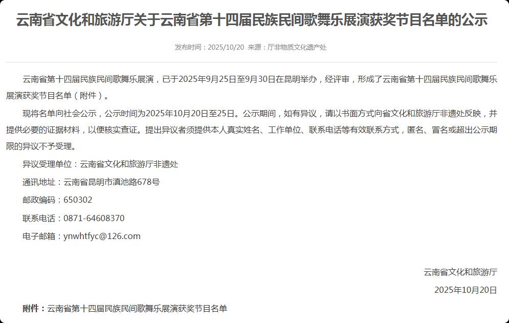 本届展演于2025年9月25日至30日在昆明成功举办,经过严格评审,最终确定了获奖节目名单。《阿细先基·诉》的获奖,是弥勒市在本届展演中取得的突出成就,也是对我市长期以来致力于非物质文化遗产保护与传承工作的充分肯定。