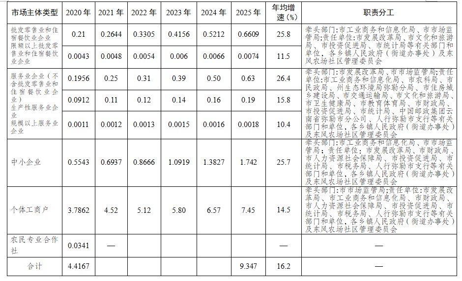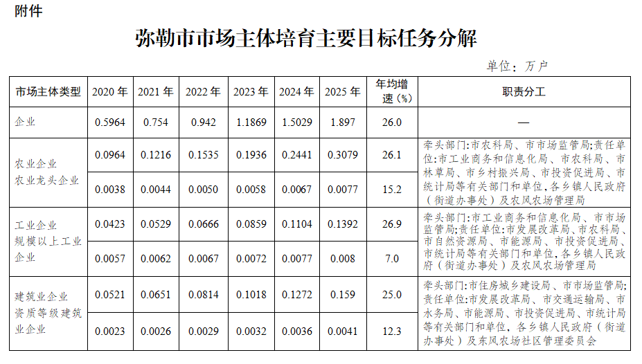 附件:弥勒市市场主体培育主要目标任务分解