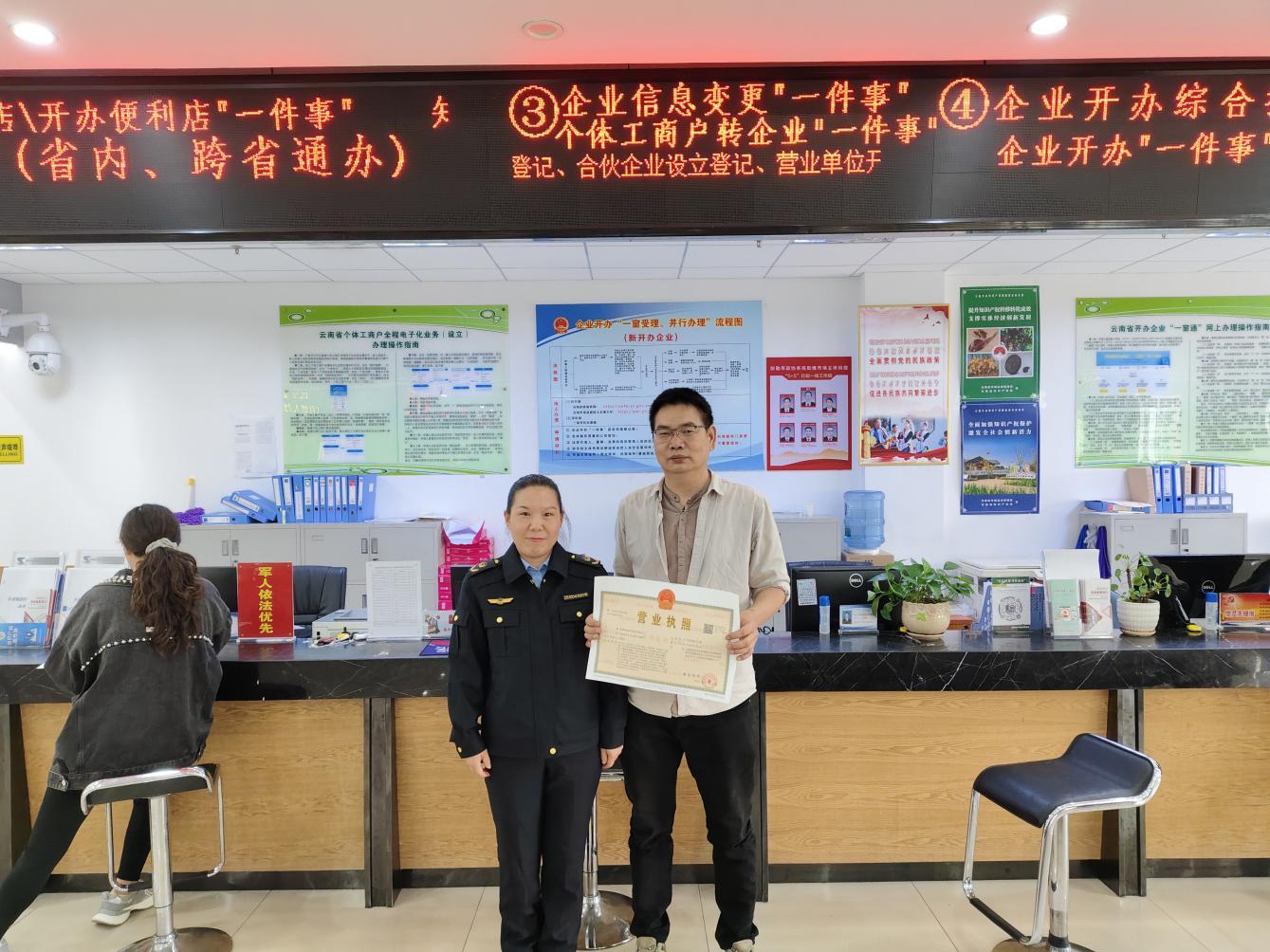 6月4日,弥勒市市场监管局颁发了全市首张通过“个转企”一件事服务办理的营业执照,杨先生成为该服务的首位受益者,转型发展成为企业后,发展底气更足了。