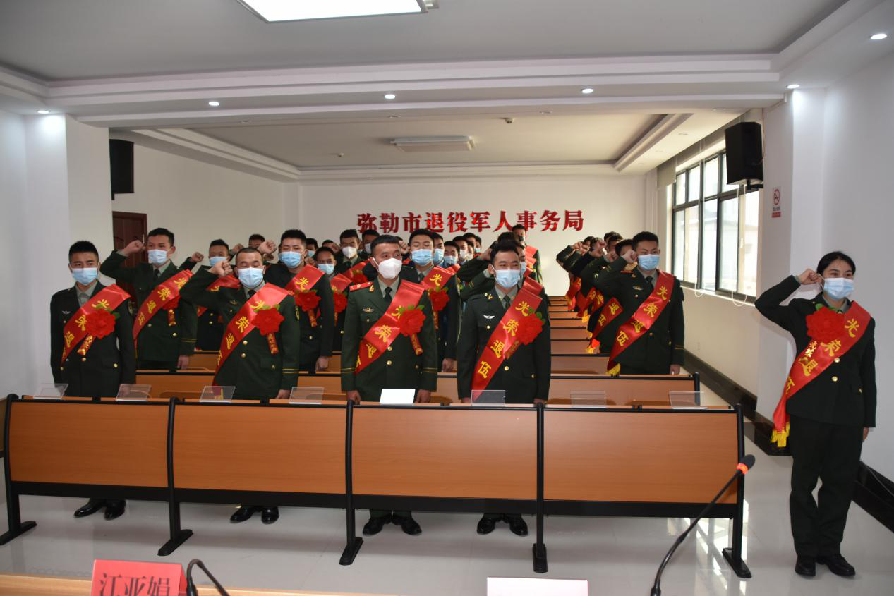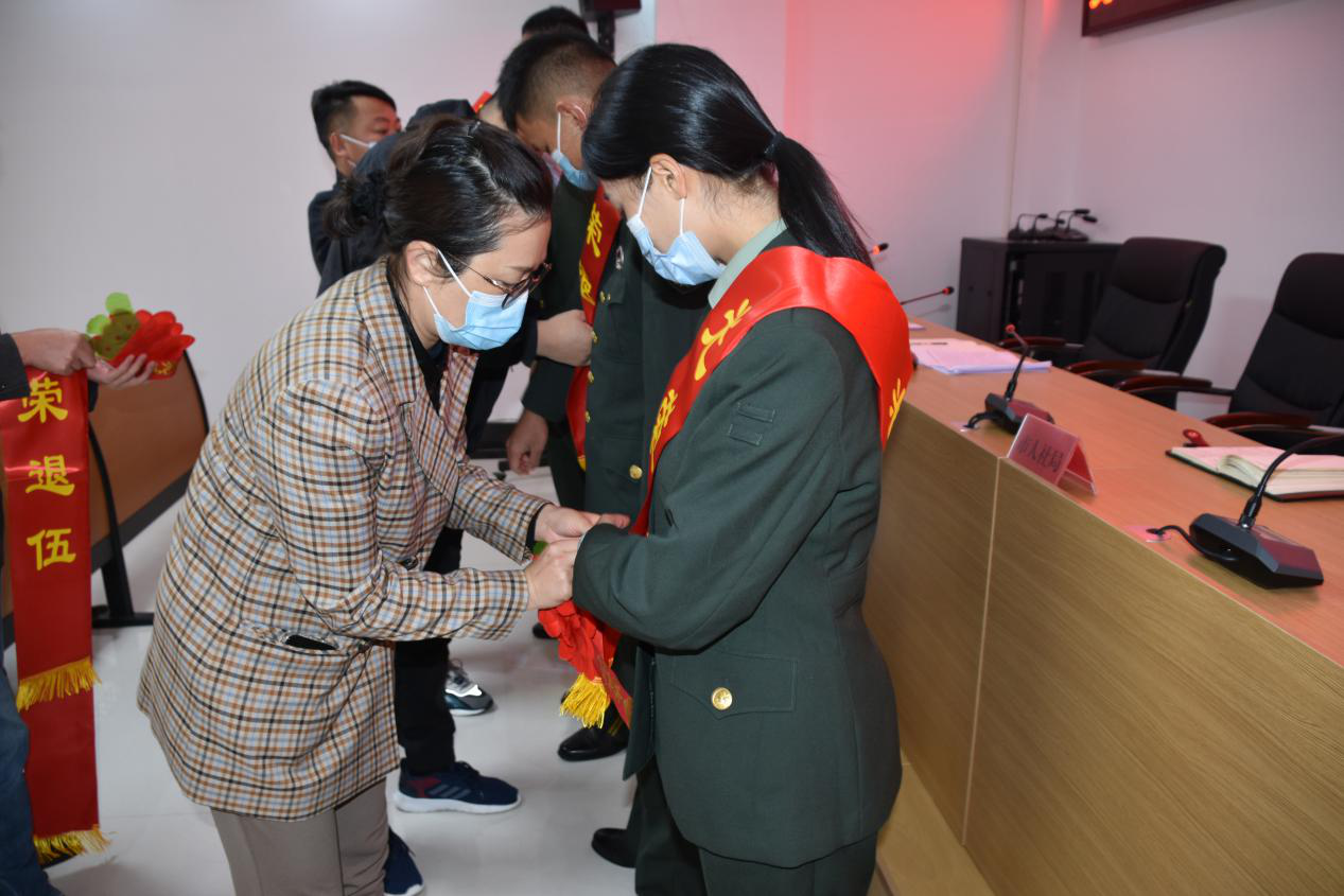 会上,参会各位领导为退役军人佩戴“光荣退伍”绶带和胸花,随后集体学唱《退役军人之歌》,重温军人誓词,党员重温入党誓词。由市退役军人事务局进行相关政策培训,市人社局进行就业创业政策培训及岗位推介,并鼓励退役士兵,要继续保持和发扬人民军队的优良传统,以更加饱满的激情、更加昂扬的斗志、更加务实的作风,投身到家乡经济社会发展的新舞台,在各条战线、各行各业开花中结果。