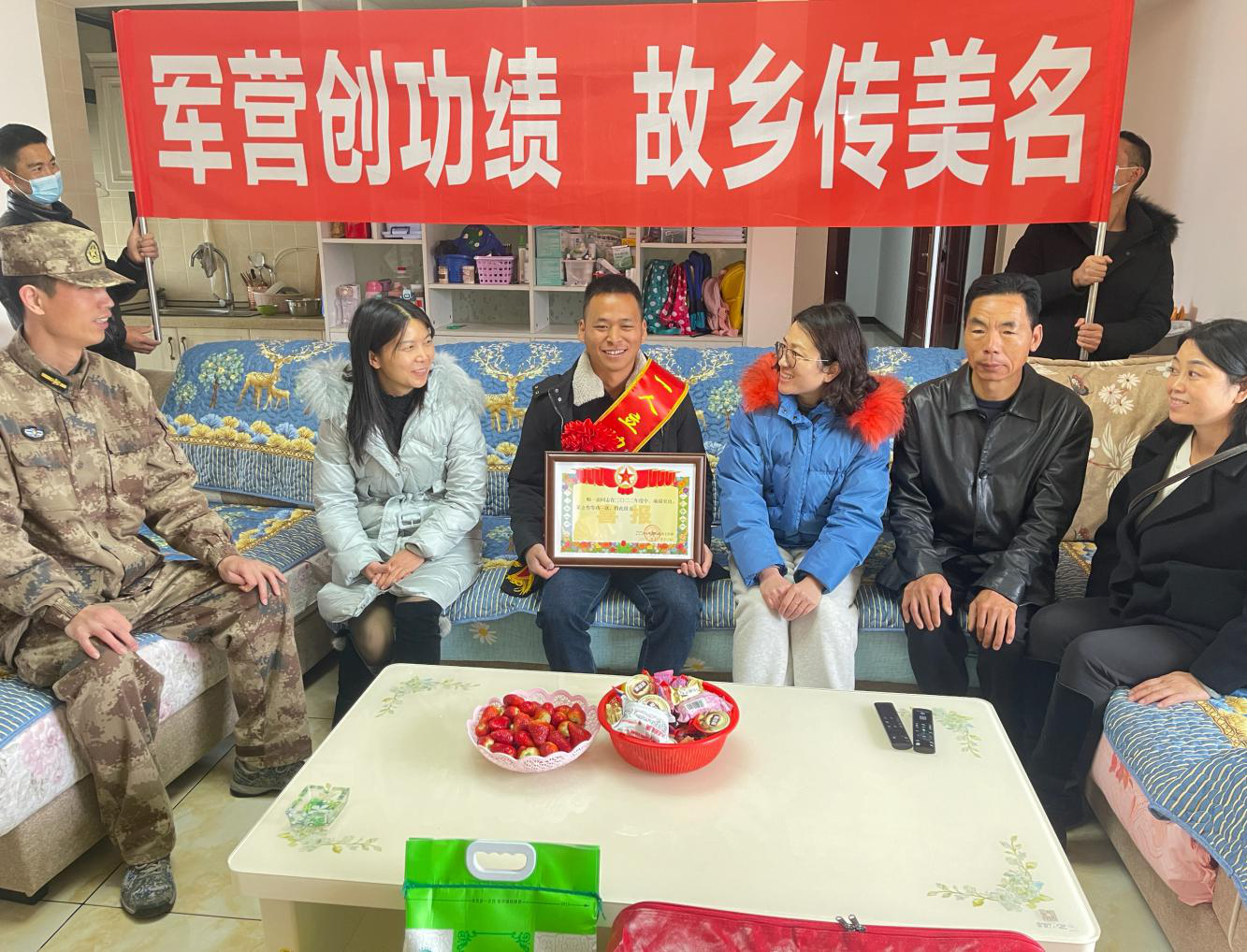 一张张喜报温暖了军中男儿身后的家人,道出了对军属的感恩和新春的祝福,更多的是党和政府对军人军属的崇高敬意和关爱。把立功喜报送到军属家里,不仅见证军人功绩、映照军属荣光、展示军队风采,更是对军人的激励鞭策、军属的关心厚爱。
