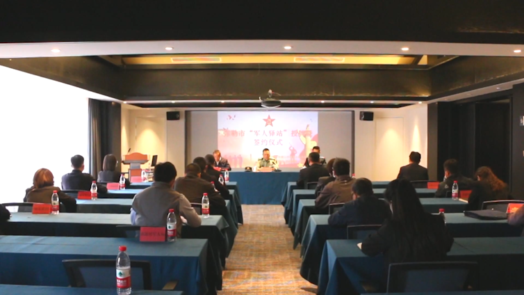 会议宣读了《弥勒市双拥工作领导小组办公室关于命名授牌“军人驿站”试点单位的决定》,“军人驿站”企业代表进行了发言,与会领导为悦心源酒店、丽景酒店、金鼎大酒店三家企业授予“军人驿站”牌匾,市双拥办与三家企业签署了合作协议。