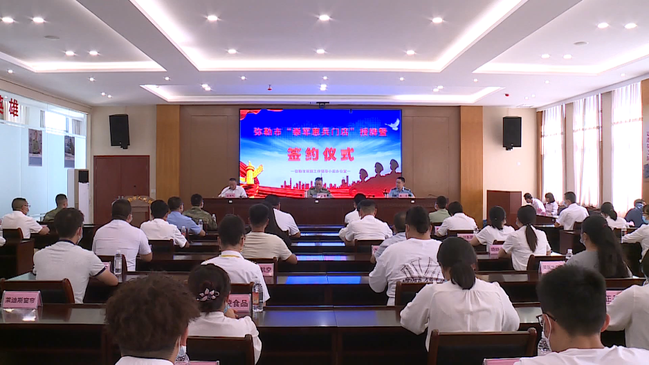 7月28日下午,弥勒市双拥工作领导小组为“崇军惠兵门店”授牌并签约。市委常委、市人武部上校政治委员李爱国出席签约仪式。