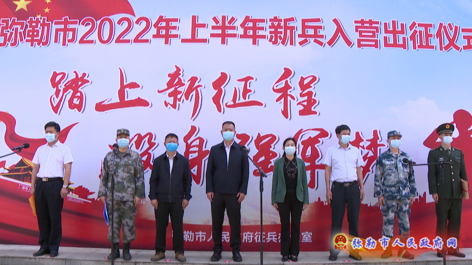 李健宣布弥勒市2022年上半年新兵启程出征。