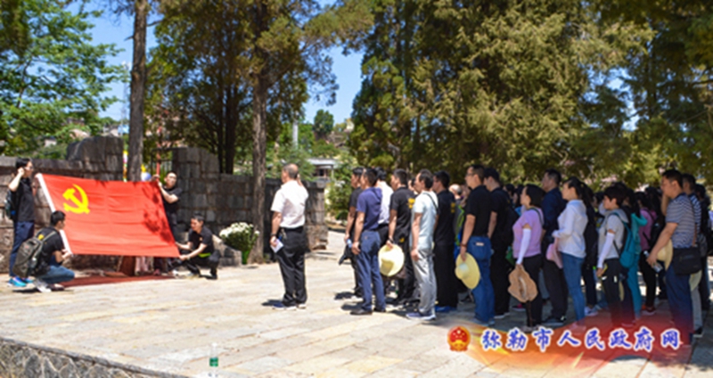 4月20日,弥勒市政府办党支部联合昆明华润圣火药业有限公司党总支到西一镇攀枝村委会勒克村朱家壁纪念馆开展爱国主义教育活动。市委常委、常务副市长马金荣,市委常委、市委统战部部长刘涛,副市长邱云春等参加活动。