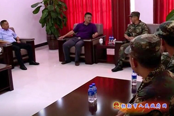 随后,包旭来到驻弥部队,向部队全体官兵送上节日的祝福,并与部队官兵亲切座谈交流,共叙军民鱼水情谊,共谋军民共建工作。包旭向部队官兵们介绍了弥勒经济社会发展情况,对部队在服务地方经济发展、维护社会平安稳定等方面所作出的贡献表示感谢。包旭指出,弥勒的稳定发展离不开驻弥部队广大官兵的关心与支持。一直以来,弥勒市委、市政府认真贯彻落实党的十九大精神,全面贯彻习近平强军思想,坚定不移地支持国防和军队改革,大力弘扬拥军优属好传统,落实各项政策,积极推动军民融合深度发展,军政军民团结不断加强。希望军地双方更加紧密地团结起来,巩固和发展“军爱民、民拥军,军民鱼水一家亲”的军政军民关系,共同融入弥勒向高端旅游城市转型的发展中来,为打造世界一流健康生活目的地再立新功。包旭表示,弥勒市委、市政府将一如既往地支持部队工作,为部队发展创造良好条件,尽力解决好部队官兵的后顾之忧,努力让大家在第二故乡感受温暖。驻弥部队领导代表部队全体官兵感谢弥勒市委、市政府和全市人民对人民子弟兵的亲切关怀和深厚情谊,表示将积极参与、支持弥勒的发展和建设,做到驻扎一方、建设一方,保一方平安,促一方经济繁荣。